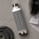 a black and white background with a lot of dots water bottle