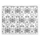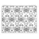 The design features a symmetrical floral pattern composed of various flowers and leaves. Notably, it showcases red roses alongside lighter red hibiscus-like flowers, each meticulously detailed with lifelike petal textures. The green leaves, complete with visible veins, enhance the naturalistic style of the design. Overall, this arrangement could be ideal for textiles, wallpapers, or other decorative applications.