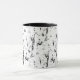 a black and white photo of a black and white photo mug