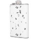 a black and white photo of a flock of birds hip flask