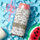 a black and white photo of a pattern seltzer can cooler