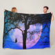 A Black Cat on a Wire Full Moon Fleece Blanket