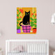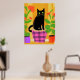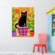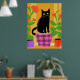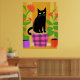 A Black Cat With Houseplants Pink Purple Seat Poster