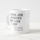 A large mug with the message "A Black Job Is Anybody That Has a Job" to mock Trump's explanation for saying immigrants are taking the black jobs. Textual content and color can be customized.