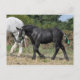 Percherons can be any shade between white and black. Here, this black foal is walking behind it's dapple grey mother at a show.
