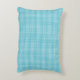 A blue and white gingham-patterned pillow on a beige surface. The simple design and soft colors create a calm and cozy ambiance.