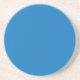 a blue background with a black and white clock coaster