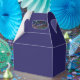 a blue background with a clock favour box