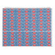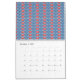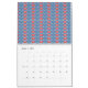 a blue background with red and white designs calendar