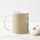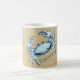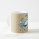 A drawing of a crab in blue is superimposed on a texured tan background on this ocean-themed coffee mug. Perfect for anyone who loves the beach, nature, and marine life.