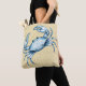 A drawing of a crab in blue is superimposed on a texured tan background on this ocean-themed crossbody bag. Perfect for anyone who loves the beach, nature, and marine life.