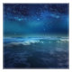 This image portrays a breathtaking scene of a blue ocean with waves crashing against the shore, under a magnificent starry sky that is adorned by a beautiful galaxy.