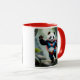 Here's the picture of a super brave panda, it's in action, running at full speed through bamboos. Her red cape, her blue suit and her boots give her strength and courage. As cute as he is, as strong as he is, he remains tender and affectionate. A humorous illustration in the forest. A perfect design for those who love stock images. For information, the panda is native to the mountain bamboo forests of China, mainly in the provinces of Sichuan, Shaanxi and Gansu.
