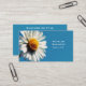 A single white daisy with a golden yellow centre under a clear blue summer sky. personalise with your business details. A professional looking business card suitable for photography, florist, gardening, nature, spa, and flower themed businesses.