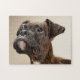 A Brindle Boxer puppy looking up curiously. Jigsaw Puzzle