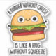 A Burger Without Cheese Like A Hug Without Squeeze Pun features a cute burger declaring that a burger without cheese is like a hug without squeeze . . Perfect Puns gift for family and friends who love cute friend puns.