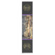 Celebrate the return of the sun on the Winter Solstice with this beautiful altar cloth. Perfect for the winter season, it features a quiet and contemplative scene in an ancient, snow covered forest, with a burning Yule log set in a ring of stones. Mistletoe ends on a black background are separated by customisable purple stripes.