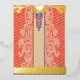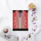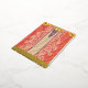 • Background: A rich red colour with an elaborate and dense pattern, adding texture and depth.