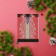 • Central Feature: A vertical ornamental strip with intricate blue and white patterns, reminiscent of traditional embroidery or filigree work.