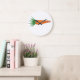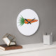 This awesome clock features a cartoon of a carrot. Someone has munched into the carrot leaving the word reindeer etched into the flesh of the vegetable. This is a Christmas treat for the Reindeer.