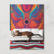 A cat on a white couch with psychedelic artwork and carpet funny AI generated art