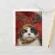 A cat wearing reindeer antlers postcard