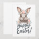 A charming hand-painted Easter illustration featuring a cute bunny wearing a colorful spring flower wreath. Soft pastel colors and delicate brushstrokes capture the joy and freshness of the season.
