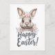 A charming hand-painted Easter illustration featuring a cute bunny wearing a colorful spring flower wreath. Soft pastel colors and delicate brushstrokes capture the joy and freshness of the season.