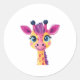A cheerful and whimsical design of a young giraffe classic round sticker