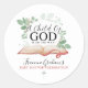 Celebrate the blessing of new life with this beautifully designed baby shower sticker. Featuring soft light greens, gentle red hues, and an open Bible, this faith-filled design perfectly complements a Christian-themed baby shower. Personalize it with the name of the mom-to-be or parents-to-be for a heartfelt touch. Ideal for favors, envelopes, or decor, this sticker is a sweet reminder of love, faith, and new beginnings.