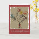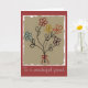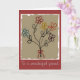 Charming birthday card with my original mixed media floral design with a child-like painting of five simple, five-petal flowers - each in a different colour: one aqua blue, one deep red, one golden yellow one orange and one violet. Each flower has a stem represented by a single line with two leaves and the bouquet is tied up with a little red yarn bow. The background of the painting has rough edges and a brown, aged appearance making it feel as if it might have been painted long ago. I've created this fully customisable card as a birthday card, but it would also be appropriate for many different occasions or just for whenever you want to send someone a little smile.