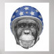 This design features a portrait of a chimpanzee in a patriotic motorcyle helmet.