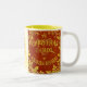 ‘God bless us, every one!’ said Tiny Tim. The heart warming quote is from "A Christmas Carol" by Charles Dickens featured here on a classic mug, with the words in dark red inside an ornate faded yellow and orange frame. Either side is a close up photograph of the vintage red and gilt book cover of the classic novel first published in 1843 and illustrated by a floral wreath of curling ivy and mistletoe You can change the soft cream background to suit, also the text. The perfect present for anyone who's into books and reading. A fun gift for the boss, too.