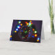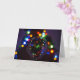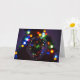 A hand holds a crystal ball in front of a vibrant, multicolored display of out-of-focus holiday lights. The sphere captures and reflects a beautifully sharp view of a decorated Christmas tree. This Christmas greeting card features a cover photograph and hand-drawn artwork by the Chief Photographer can creator of God Bless the Keg Publishing LLC, Mr. Paul John Hausleben.
