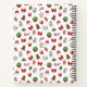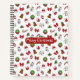 A Christmas notebook with a white background, decorated with a snowman and red and green candy, and is customisable