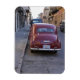 A classic old red Peugeot car parked on a street Magnet