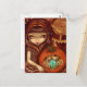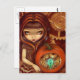 A steampunk take on a Jack-o-lantern - a Clockwork Pumpkin! This lovely girl has created a mechanical pumpkin with an eerie blue/green light within. Lovely gears & clockwork accents in the background add to the steampunk flair. My own original acrylic painting.