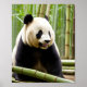 A detailed portrayal of a majestic panda in its natural habitat, surrounded by lush bamboo forests.