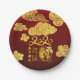Golden Auspicious clouds + rat paper-cut, Year of the rat, greeting in Chinese and large 2020 written in calligraphy style. All elements can be moved you as you wish. Design on party paper plate with gradient dark red background. Matching paper napkin, postcard, greeting card, invitation, sticker, craft products and more... Perfect for a traditional and modern Chinese New Year of the Rat 2020.