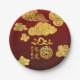 Golden Auspicious clouds in front and in back : golden Tiger paper-cut, golden Year of the Tiger, golden greeting in Chinese and large golden 2022 written in calligraphy style + Tiger ideogram (font). All elements can be moved you as you wish. Design on paper plate on gradient dark red background. Matching greeting card, holidays postcard, craft supplies, party supplies and more... Perfect for a traditional and modern Chinese New Year of the Tiger 2022.