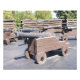 This photo captures the sight of a collection of old cannons sitting on display atop a wooden fort.