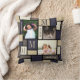 Create your own designer throw pillow featuring a modern chic colour block design in a calm neutral coastal colour theme and your 3 photo collage. Personalise this stylish pillow further with your custom monogram initial and name artfully placed across the blue, grey, tan and off white colour blocks. These colours work well in a coastal beach or nautical theme. Pillow reverses to a solid Eclipse blue background with a larger monogram and name option. Designed with a neutral colour palette of Soybean, Eclipse, Sweet Corn and Brown Granite, this simple geometric pattern throw pillow is a unique way to showcase your favourite family, pet or social media pictures. Update your home decor or create a thoughtful personalised gift for someone special with this beautiful colour block photo pillow.