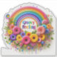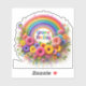 This vibrant display features a joyful arrangement of stickers showcasing a rainbow arching over an explosion of colourful flowers. The delightful text Groovy Feeling adds a whimsical touch, perfect for brightening spaces and uplifting spirits.