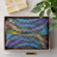 Abstract digital art of rainbow coloured shapes that are blurred and wavy, arranged in a circular motion
