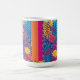 a colourful flower and leaves pattern on a blue ba magic mug