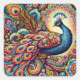 A colourful image of a pointillism paisley peacock painting, in the style of pixel art, particulate