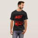 The front of the t-shirt showcases the image of a close-up of a car’s headlight glowing with an intense, vivid red light. Inside the headlight, intricate circular patterns create a futuristic, almost mystical design. The rings are filled with geometric shapes, spirals, and detailed linework, giving the appearance of high-tech or magical symbols. The red illumination sharply contrasts with the dark surroundings, highlighting the sleek, reflective surface of the car’s body. The overall mood is dramatic and cinematic, with the glowing patterns giving the headlight a powerful, otherworldly presence.