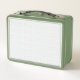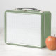 A completely white, featureless surface fills the metal lunch box