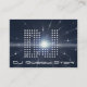 A cool dj businesscard template with a stunning design of the dotted letters DJ in the night sky combined with withe backlight music notes on a dark space background.
