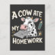 A Cow Ate my Homework Funny Back to school Cow Announcement Postcard